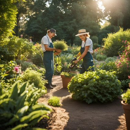 Tonte de la pelouse, taille des haies, ramassage des feuilles.