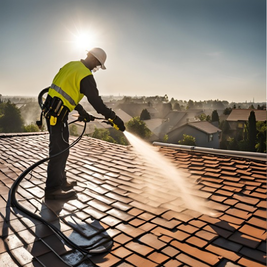 Nettoyage haute pression pour surfaces en hauteur, terrasses et toitures, pour un résultat impeccable et durable.